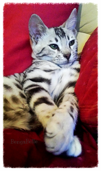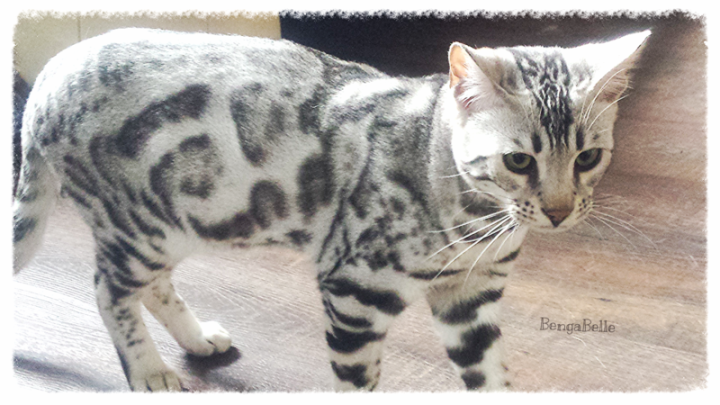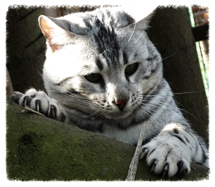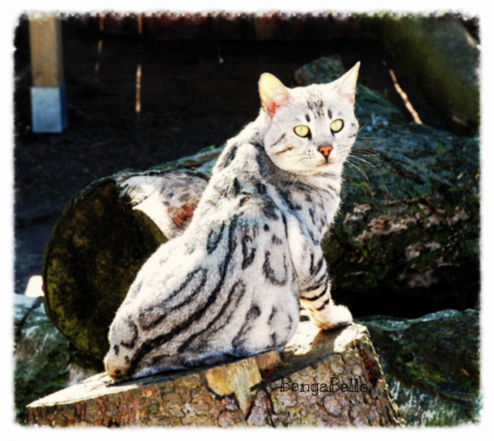 Auch für Storm, unserem silbernen Kater, suchen wir im Laufe des Jahres ein entgültiges Zuhause als Liebhabertier. Er ist ein sehr kräftiger und muskulöser Bengale. Sein Charakter ist freundlich und menschenbezogen. Storm kennt unser sehr großes Freigehege und fordert dies auch ein. Ein grosses Gehege ist also die Mindestanforderung an sein zukünftiges Zuhause . Noch besser wäre für Storm eine ländliche Umgebung mit Freigang. Trotzdem benötigt er aber eine weitere Katze in seinem neuen Zuhause. Sehr gerne kann er zusammen mit einem unserer Kitten ausziehen oder zu einem bereits vorhandenen Kitten. Zuchtanfragen sind zwecklos, den auch Storm verlässt uns selbstverständlich nur kastriert und wenn alles zu ihm passt.